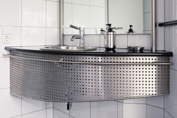 Obok nowoczesnych elementów wyposażenia z wysokiej jakości materiałów takich - jak drewno, granit i szkło, blachy perforowane z aluminium i stali nierdzewnej wpisują się harmonijnie w ten piękny nowy wystrój. Właściwie powinno być oczywistym, że blacha perforowana, która nawet po latach wygląda jak nowa,powinna się sprawdzić także w łazienkach.