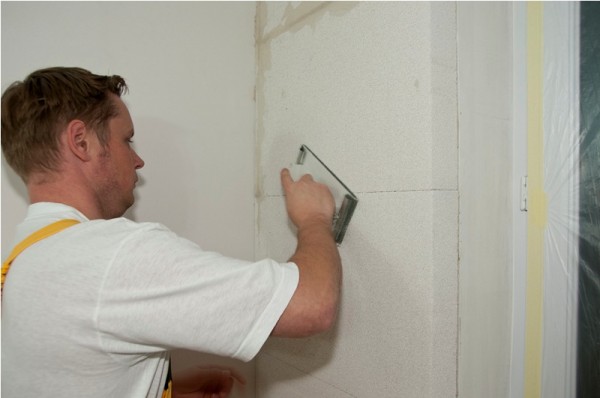Wyrównywanie pacą do szlifowania ewentualnych nierówności na powierzchni ściany5. Wykończenie powierzchni ściany – pacą zębatą należy nanieść zaprawę na całą powierzchnię ściany. Następnie w warstwę zaprawy trzeba wtopić siatkę zabezpieczającą przed spękaniami. Po wykonaniu tej czynności trzeba zatrzeć powierzchnię całej ściany, a w dalszej kolejności ostatecznie wyrównać.
