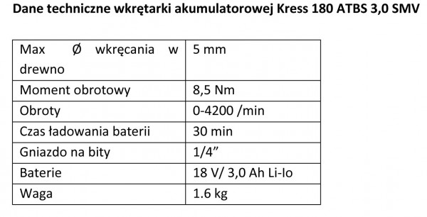 Wkrętarka akumulatorowa Kress 180 ATBS 3,0, cena 2507,97zł brutto