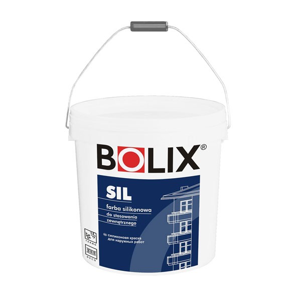 Farba silikonowa Bolix SIL służy do wykonywania dekoracyjnej, renowacyjnej i konserwacyjnej powłoki malarskiej na zewnętrznych powierzchniach budynku. Trwały i atrakcyjny wizualnie efekt sprawia, że jest ona polecana do malowania obiektów zabytkowych i reprezentacyjnych. Nadaje się przy tym zarówno do nowych powierzchni, jak i wymalowań renowacyjnych. Nałożona w dwóch warstwach, tworzy barwną matową powłokę, o wysokiej paraprzepuszczalności i hydrofobowości, zapewniającej trwałość oraz odporność na czynniki atmosferyczne.Bolix SIL stosuje się na takich podłożach, jak: betonowe powierzchnie, płyty cementowe, mury ceglane, tynki cementowe i cementowo-wapienne, cienkowarstwowe tynki mineralne, silikatowe i silikonowe. W zależności od wybranej techniki, farbę nakłada się za pomocą: pędzla, wałka malarskiego lub pistoletu natryskowego z agregatem sprężarkowym. Szeroka gama dostępnych barw pozwala odpowiednio dostosować produkt do charakteru dekorowanego budynku.