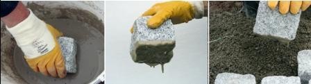 Kamienie przeznaczone do układania powinny być suche, czyste, na krawędziach nie powinny znajdować się resztki piasku, pyłu, gliny lub innych środków pogarszających przyczepność.