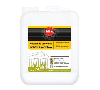 Altax Preprat do usuwania mchów glonów i porostów Algat 5LNa początku warto wiedzieć, że porośnięte mchem elementy architektury, takie jak ściany, dachy, drewniane płoty czy podłogi, nie tylko nie wyglądają dobrze, ale i mogą wywoływać niepożądane skutki i dla zdrowia, i dla konstrukcji, na której się pojawiły. Mech pojawia się w miejscach zacienionych i narażonych na zawilgocenie. Wilgoć to doskonała pożywka dla rozwoju różnego rodzaju grzybów pleśniowych, które mogą doprowadzić do erozji powierzchni, na której się zadomowiły – tłumaczy Andrzej Wójcik, doradca techniczny firmy Altax.