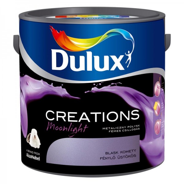 Dulux Creations – Moonlight lateksowa emulsja do ścian i sufitów. Uzyskany efekt Metalicznego Połysku nadaje blasku oraz efektownego wyglądu pomalowanym ścianom.