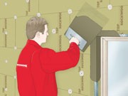 Sposób przyklejania siatki z włókna szklanego przy otworach okiennych i drzwiowych: