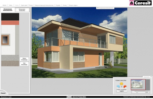 Fot. Ceresit VISAGENa naszej stronie internetowej klienci znajdą specjalną aplikację, dzięki której będą mogli sprawdzić bogatą paletę kolorów i znaleźć najbardziej odpowiedni dla własnego domu. Dla osób, które nie mają czasu na sprawdzenie wielu kombinacji kolorystycznych lub nie czują się w tym zbyt pewnie, projektanci z firmy Henkel przygotowali gotowe kompozycje dopasowane do różnego rodzaju budynków – dodaje Łukasz Woronowicz z Henkel Polska.Aplikacja przewiduje załadownie na serwer zdjęcia własnego domu, na którym za pomocą funkcji dostępnych w programie jesteśmy w stanie zmienić kolor ścian zewnętrznych, stolarki czy też dachu. Program umożliwia również zmianę rodzaju powierzchni poszczególnych elementów. Dzięki tej opcji przekonamy się czy efekt kamienia lub metalu pasuje do bryły naszego domu.