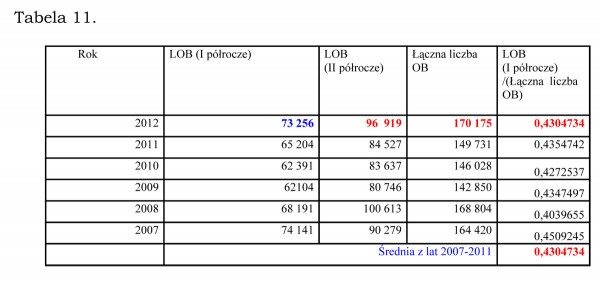 Natomiast w układzie regionalnym w I półroczu 2012 r.: