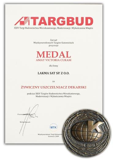 Uszczelniacz został wyróżniony Złotym Medalem na Międzynarodowych Targach w Katowicach w kwietniu 2009.