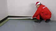 Prace rozpoczynamy od wykonania dylatacji obwodowej z pasa płyty STEPROCK HD4F, który umieszczamy wokół ścian, słupów, itp. Płyty układamy swobodnie, dociskając krawędzie do siebie. Należy pamiętać, aby w ostatnim etapie prac przyciąć wystający pas dylatacyjny na równo z podkładem podłogowym za pomocą zwykłego ostrego noża.