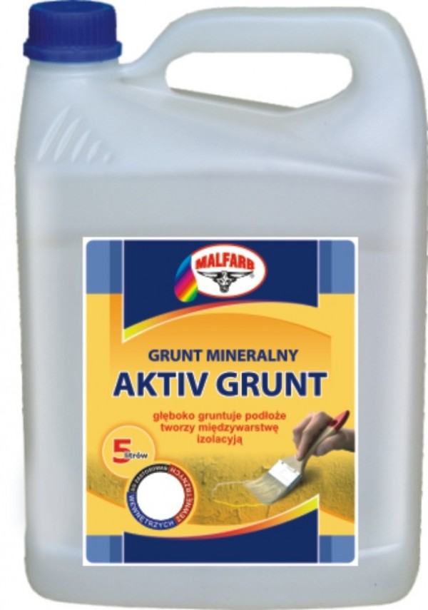 Fot. MalfarbJeśli natomiast malujemy stare powierzchnie (wymagające radykalnego wzmocnienia, jak np. zniszczone osypujące się tynki), zastosujmy mocny koncentrat Aktiv Grunt, który głęboko wnika i wiąże luźne cząstki. Produkt ten z powodzeniem można stosować także na ścianach zewnętrznych. Co więcej, Aktiv Grunt polecany jest także do zabezpieczenia dociepleń na elewacjach zakończonych na etapie zatopionej siatki, których wykończenie za pomocą tynku zostało odsunięte w czasie. Zagruntowane w ten sposób docieplenie można też pomalować farbą elewacyjną Malfarb Akryl Color, co nie tylko zabezpieczy dodatkowo ścianę (farba ta zawiera dodatek silikonu), a także poprawi jej estetykę.Podczas stosowania gruntów nie zapominajmy jednak o ważnej kwestii: zbyt duża ilość produktu może „zeszklić” ścianę, co właściwie uniemożliwi dalsze malowanie. Dzieje się tak, kiedy podłoże nie jest chłonne i produkt zasycha na powierzchni. Gdy taka sytuacja wystąpi możemy zastosować np. Grunt Szczepny, który przywróci ścianom właściwą szorstkość i przyczepność.