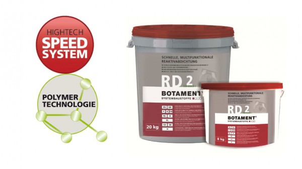 Szybkosprawna, wielofunkcyjna masa izolacyjna BOTAMENT RD 2 The Green 1 to produkt nowej generacji znajdujący zastosowanie w izolacji tych części budowli i budynków, które narażone są na destrukcyjne działanie wody, np. ścian fundamentowych. Dzięki wykorzystaniu najnowszych osiągnięć technologii polimerów zastosowany innowacyjny środek wiążący, przez co produkt posiada wszelkie zalety stosowanych dotychczas w tym obszarze grubowarstwowy mas bitumicznych (określanych także jako masy KMB) nie wykazując przy tym większości ich wad.