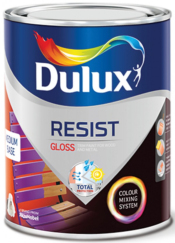 Dulux Resist to rozpuszczalnikowa emalia do drewna i metalu, o satynowym i błyszczącym wykończeniu. Dzięki zastosowaniu nowoczesnej technologii Total Protection tworzy wysokoodporne powłoki na działanie czynników atmosferycznych (deszcz, mróz, słońce, różnice temperatur) oraz czynników mechanicznych (zmywanie, szorowanie).