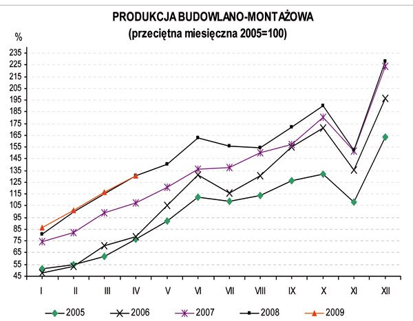 Szacuje się, że ceny produkcji budowlano-montażowej w kwietniu 2009 r. były o