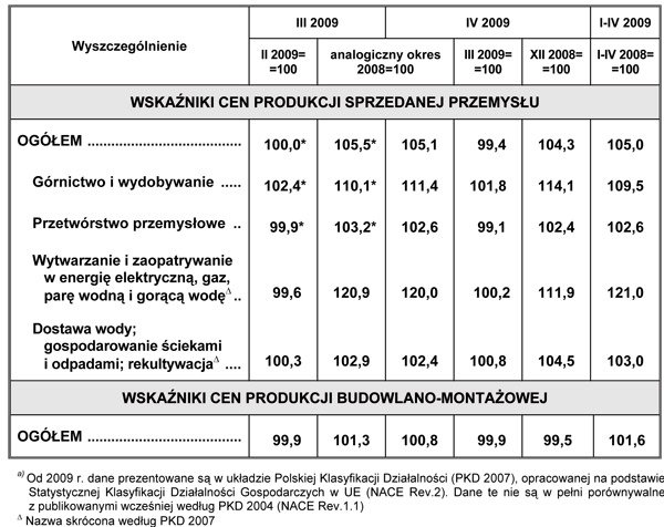 Wskaźniki cen produkcji sprzedanej przemysłu oraz produkcji budowlano-montażoweja) w kwietniu 2009 r.