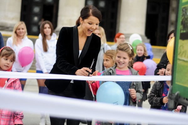 Przed otwarciem wystawy, w Cafe Kulturalna w Pałacu Kultury i Nauki, odbyło się krótkie spotkanie prasowe poświęcone konkursowi „Kolorowe Boiska…”. Gościem Specjalnym wydarzenia była Joanna Jabłczyńska, która już po raz drugi wsparła akcję i dokonała symbolicznego otwarcia wystawy - Z rozmów z dziećmi, ich nauczycielami i rodzicami wiem, jak wiele wysiłku i zaangażowania włożyli mali autorzy i ich opiekunowie, byśmy dzisiaj mogli podziwiać te pełne kolorów prace plastyczne - powiedziała Joanna Jabłczyńska - Z zaprezentowanych na wystawie dzieł bije radość i pozytywna energia, każda z prac jest naprawdę wyjątkowa i urzeka swoją pomysłowością - dodała aktorka.