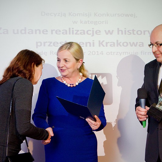 Nagrodę odbiera Pani Dorothea Smatloch-Klechowska, Fot. A. Hardt (Renowacje i Zabytki) Na tegorocznym Europejskim Kongresie Informacji Renowacyjnej (EKIR 2014), który odbył się w dniach od 31 marca do 2 kwietnia w Krakowie firma Keim otrzymała dwie nagrody RENOWATOR w kategoriach: „Za udane realizacje w historycznej przestrzeni Krakowa” oraz „Za całokształt dokonań w renowacji obiektów zabytkowych”. Firma Keim dziękuje Komisjom Konkursowym za uznanie dla swoich osiągnięć, jednocześnie podkreśla, że traktuje te nagrody jako ogromne wyróżnienie, ale jednocześnie jako zobowiązanie do dalszej, wytężonej pracy.Źródło: Keim