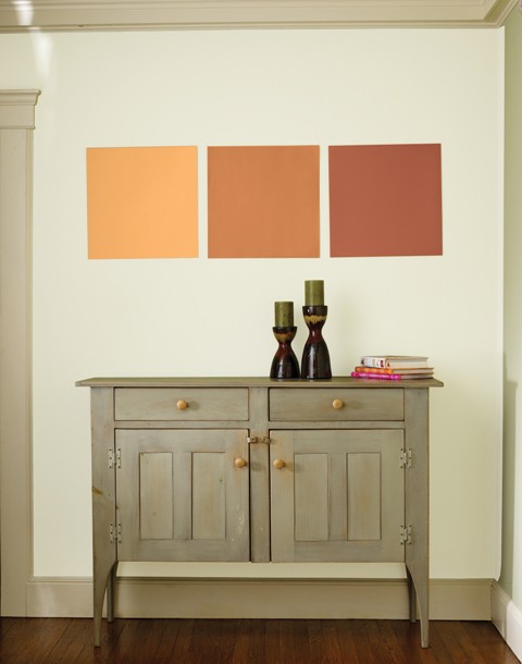 Praktycznie większość producentów farb posiada je w swojej ofercie. Malując fragment ściany da się też sprawdzić jak wybrany kolor wygląda w świetle dziennym i sztucznym. Przyłożyć do niego ulubiony pled, czy obraz. To zadanie można sobie ułatwić korzystając z gotowych, papierowych próbek marki Benjamin Moore w rozmiarze XXL, tak zwanych Big Chips. Ich format (46 x 46 cm) pozwala wyobrazić sobie, jak kolor będzie wyglądał na ścianie.