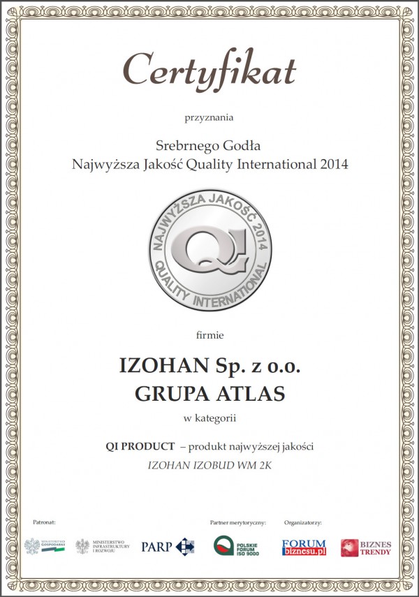 Jeden z topowych produktów hydroizolacyjnych należącej do Grupy ATLAS firmy IZOHAN, masa asfaltowo-kauczukowa IZOBUD WM 2K, został wyróżniony w konkursie Najwyższa Jakość Quality International 2014. Otrzymał on Srebrne Godło w kategorii „QI Product – produkt najwyższej jakości”.