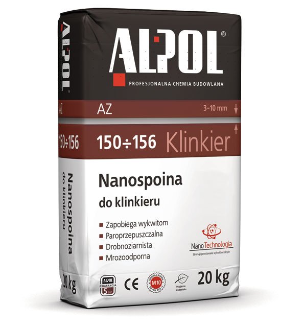 Nanozaprawa do klinkieru ALPOL jest to kolorowa zaprawa do wznoszenia murów z cegieł licowych z jednoczesnym spoinowaniem oraz do murowania ogrodzeń, fundamentów, studzienek, ścian konstrukcyjnych i kominów z cegieł klinkierowych wewnątrz i na zewnątrz budynków. Zaprawą można również wypełniać fugi o szerokości do 30 mm między cegłami i płytkami elewacyjnymi. Dzięki zastosowaniu nanododatków zaprawa jest wysoce odporna na powstawanie wykwitów solnych. Produkt dostępny jest w siedmiu kolorach: