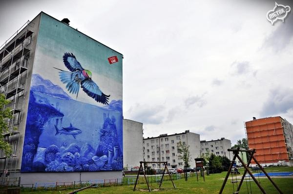 Fot. Farby KABE Powstał kolejny mural przy wymalowaniu którego zostały wykorzystane produkty Farby KABE.Malowidło przedstawia podwodny świat. Jest usytuowany na osiedlu Zawadzkie w Opolu w pobliżu basenów, stąd pomysł pokazania podwodnych roślin i zwierząt.